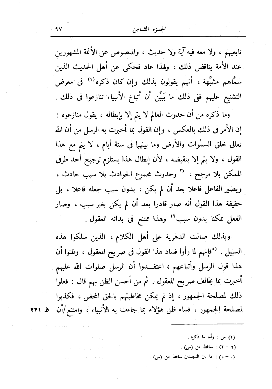 وبذلك صالت الدهرية على أهل الكلام، الذين سلكوا هذه السبيل.