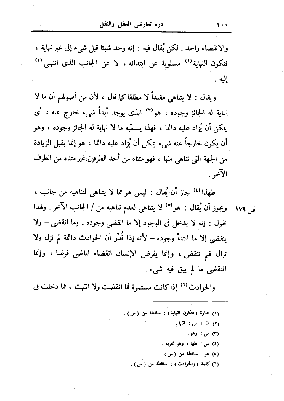 ولكن يقال فيه: إنه وجد شيئاً قبل شيء إلى غير نهاية، فتكون النهاية مسلوبة عن ابتدائه، لا عن الجانب الذي انتهى إليه.