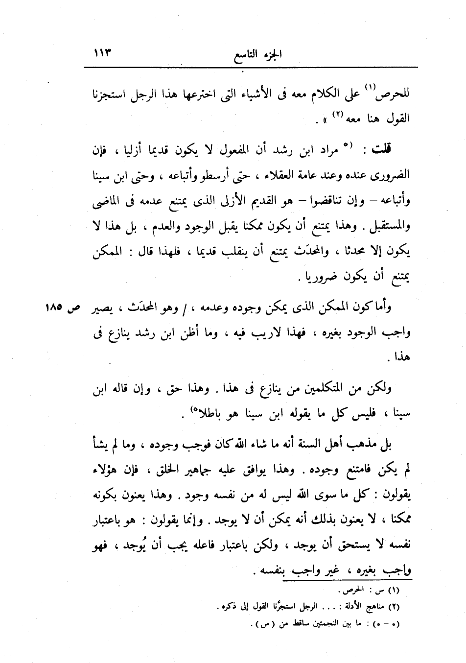 قلت: مراد ابن رشد أن المفعول لا يكون قديماً أزلياً فإن الضروري عنده وعند عامة العقلاء، حتى أرسطو وأتباعه، وحتى ابن سينا وأتباعه -وإن تناقصوا- هو القديم الأزلي الذي يمتنع عدمه في الماضي والمستقبل.