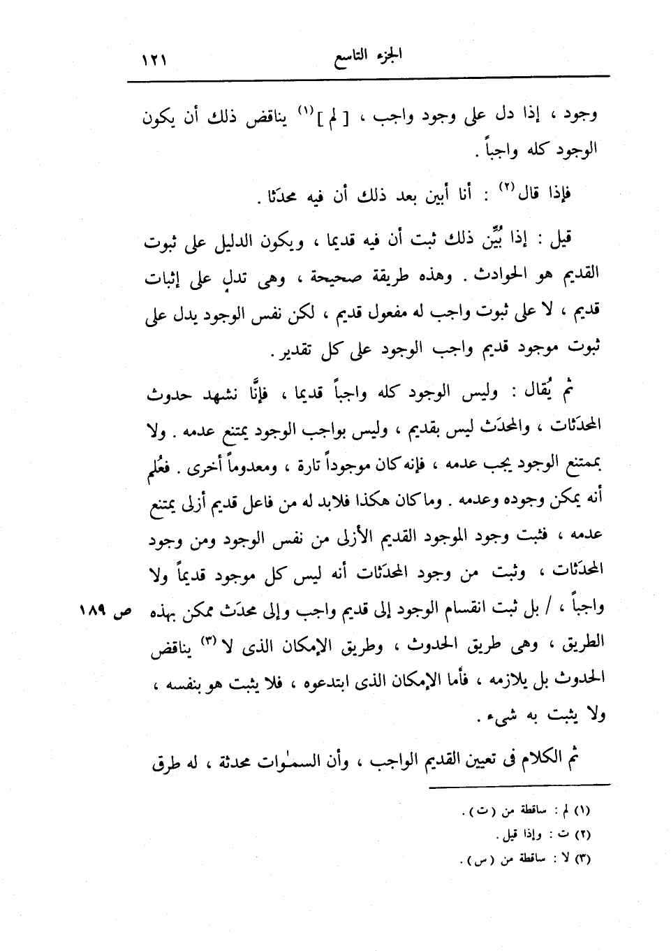 ثم الكلام في تعيين القديم الواجب، وأن السماوات محدثه، له طرق