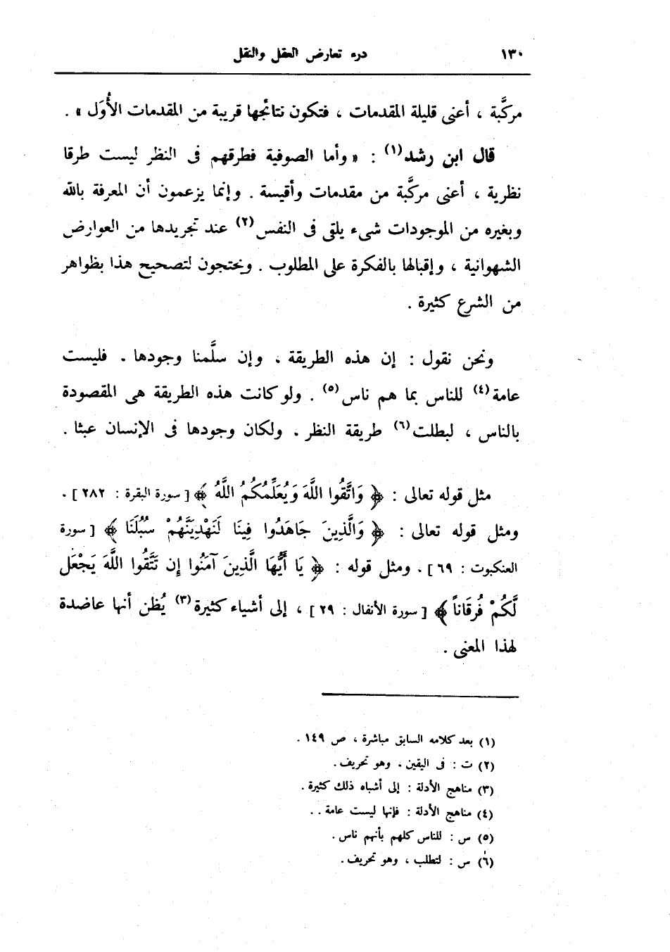 قال ابن رشد: وأما الصوفية فطرقهم في النطر ليست طرقاً نظرية، أعني مركبة من مقدمات وأقيسة.