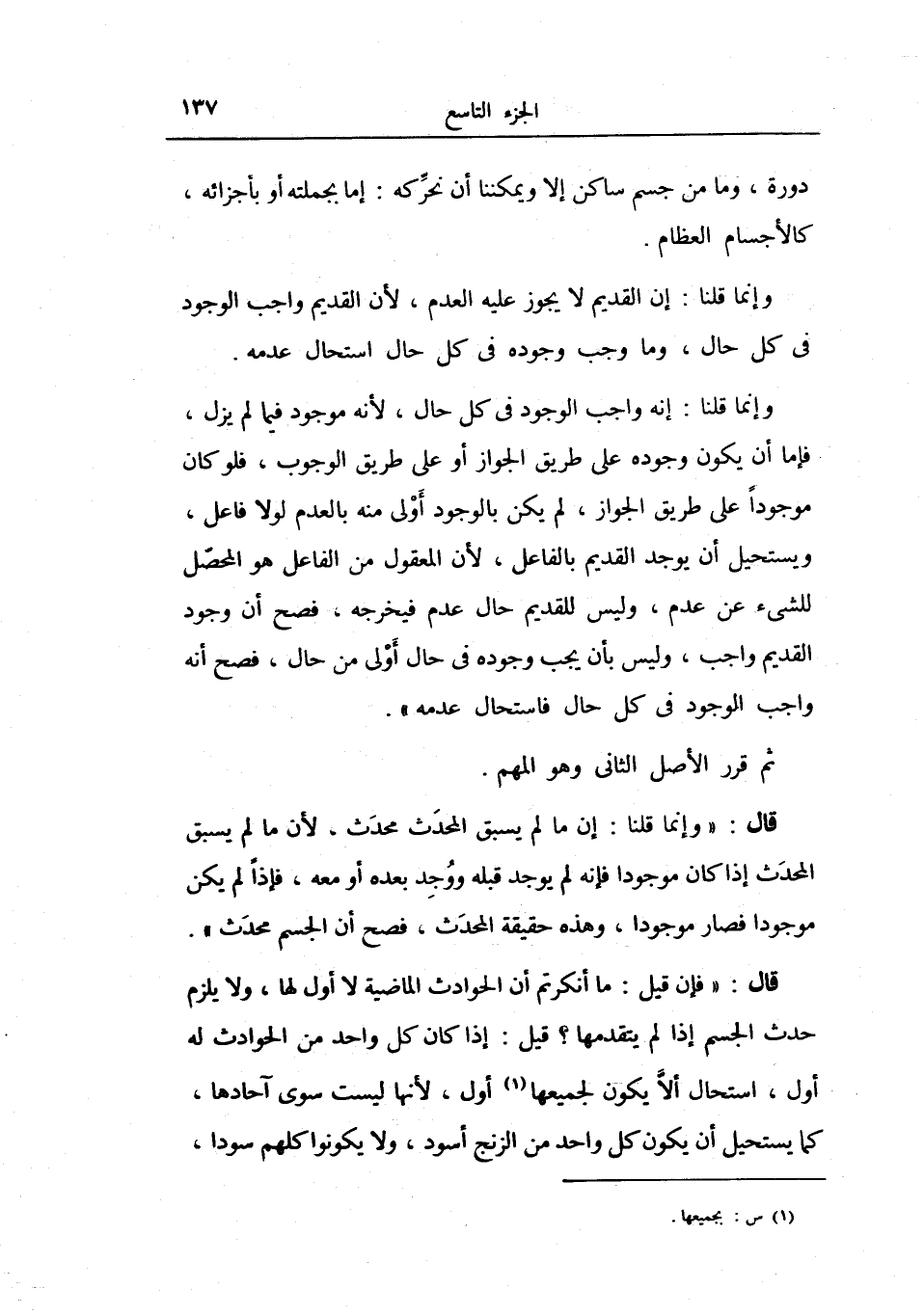 قيل: إذا كان كل واحد من الحوادث له أول، استحال ألا يكون لجميعها أول، لأنها ليست سوى آحادها، كما يستحيل أن يكون كل واحد من الزنج أسود، ولا يكونوا كلهم سوداً،