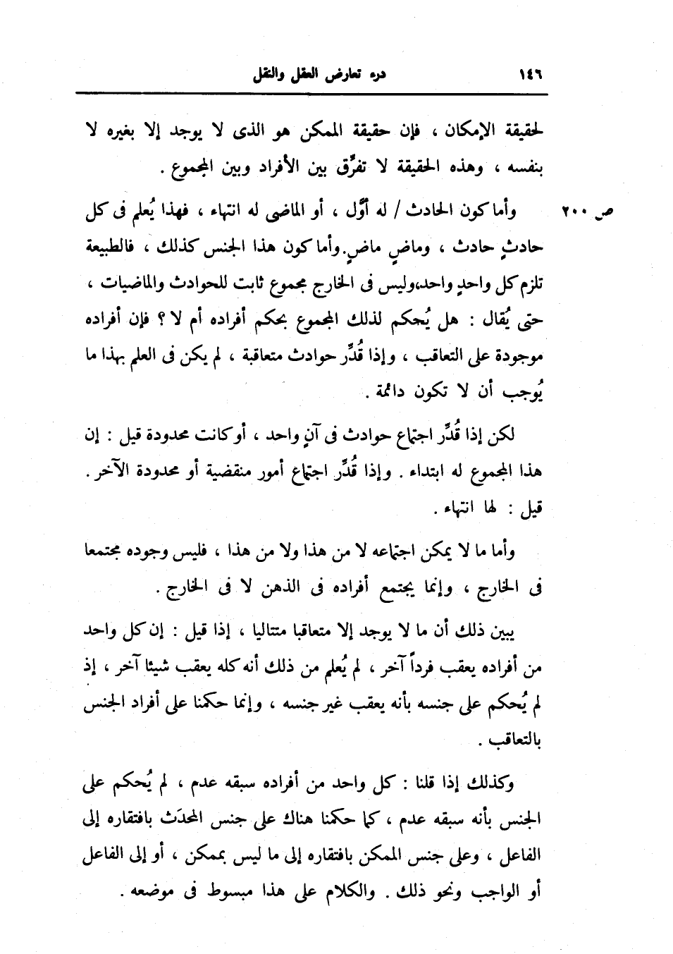 يبين ذلك أن ما لا يوجد إلا متعاقباً متتالياً، إذا قيل: إن كل واحد من أفراده يعقب فرداً آخر، لم يعلم من ذلك أنه كله يعقب شيئاً آخر، إذا لم يحكم على جنسه بأنه يعقب غير جنسه، وإنما حكمنا على أفراد الجنس بالتعاقب.