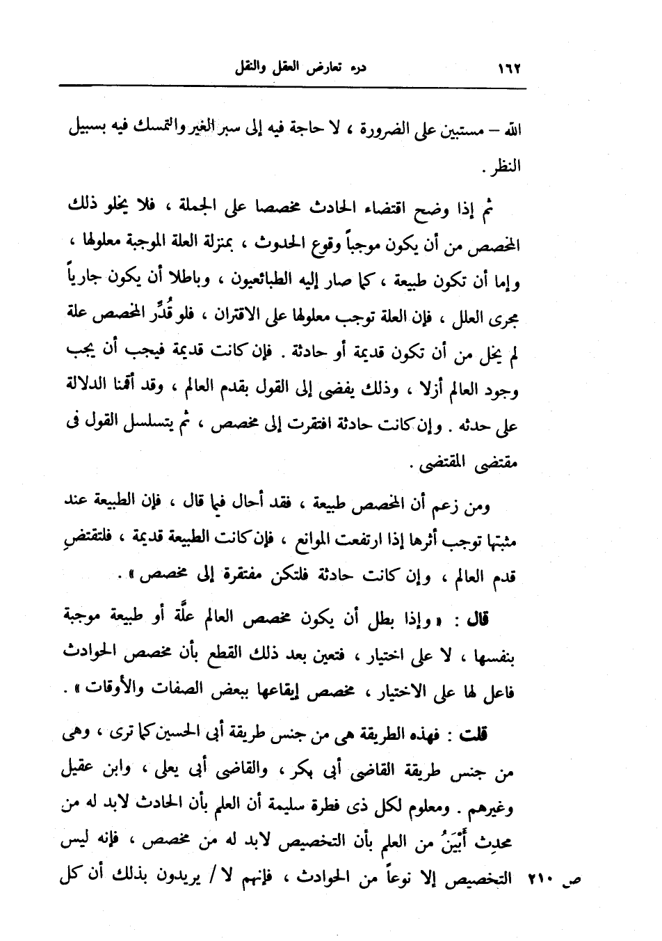 ومعلوم لكل ذي فطرة سليمة أن العلم بأن الحادث لا بد له من محدث أبين من العلم بأن التخصص لا بد له من مخصص، فإنه ليس التخصص إلا نوعاً من الحوادث، فإنهم لا يريدون بذلك أن كل