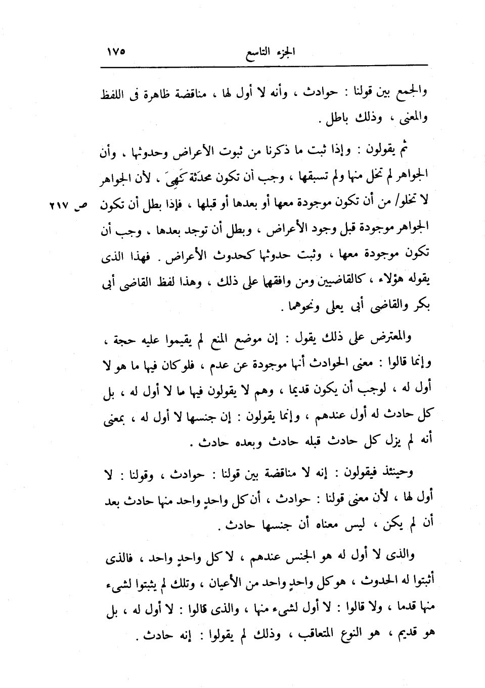 وحينئذ فيقولون: إنه لا مناقضة بين قولنا: حوادث، وقولنا: لا أول لها، لأن معنى قولنا: حوادث، أن كل واحد واحد منها حادث منها حادث بعد أن لم يكن، ليس معناه أن جنسها حادث.
