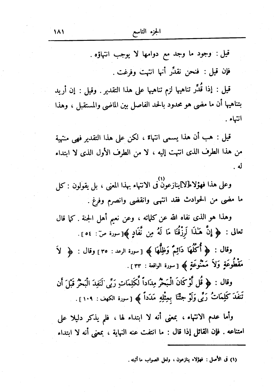 وأما عدم الانتهاء، بمعنى أنه لا ابتداء لها، فلم يذكر دليلاً على امتناعه.