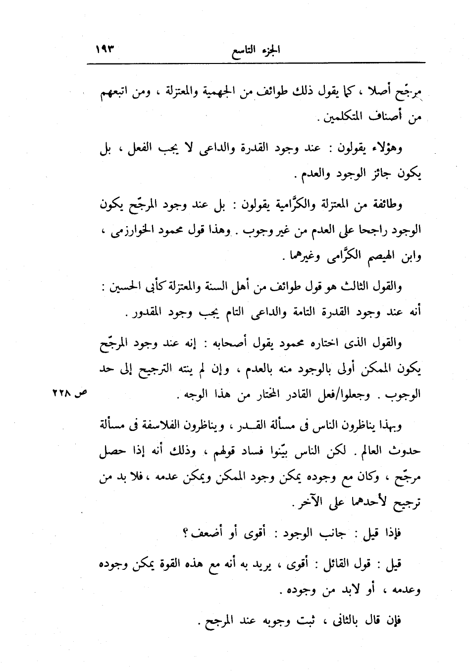 وطائفة من المعتزلة الكرامية يقولون: بل عند وجود المرجح يكون الوجود راجحاً على العدم من غير وجود.