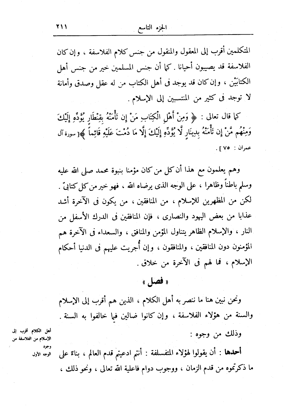 أهل الكلام أقرب إلى الإسلام من الفلاسفة