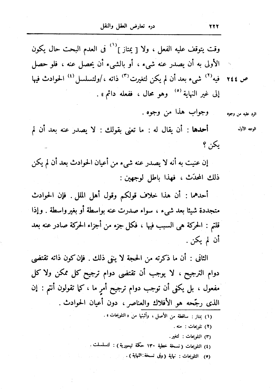 فإن الحوادث متجددة شيئاً بعد شيء، سواء صدرت عنه بواسطة أو بغير واسطة.