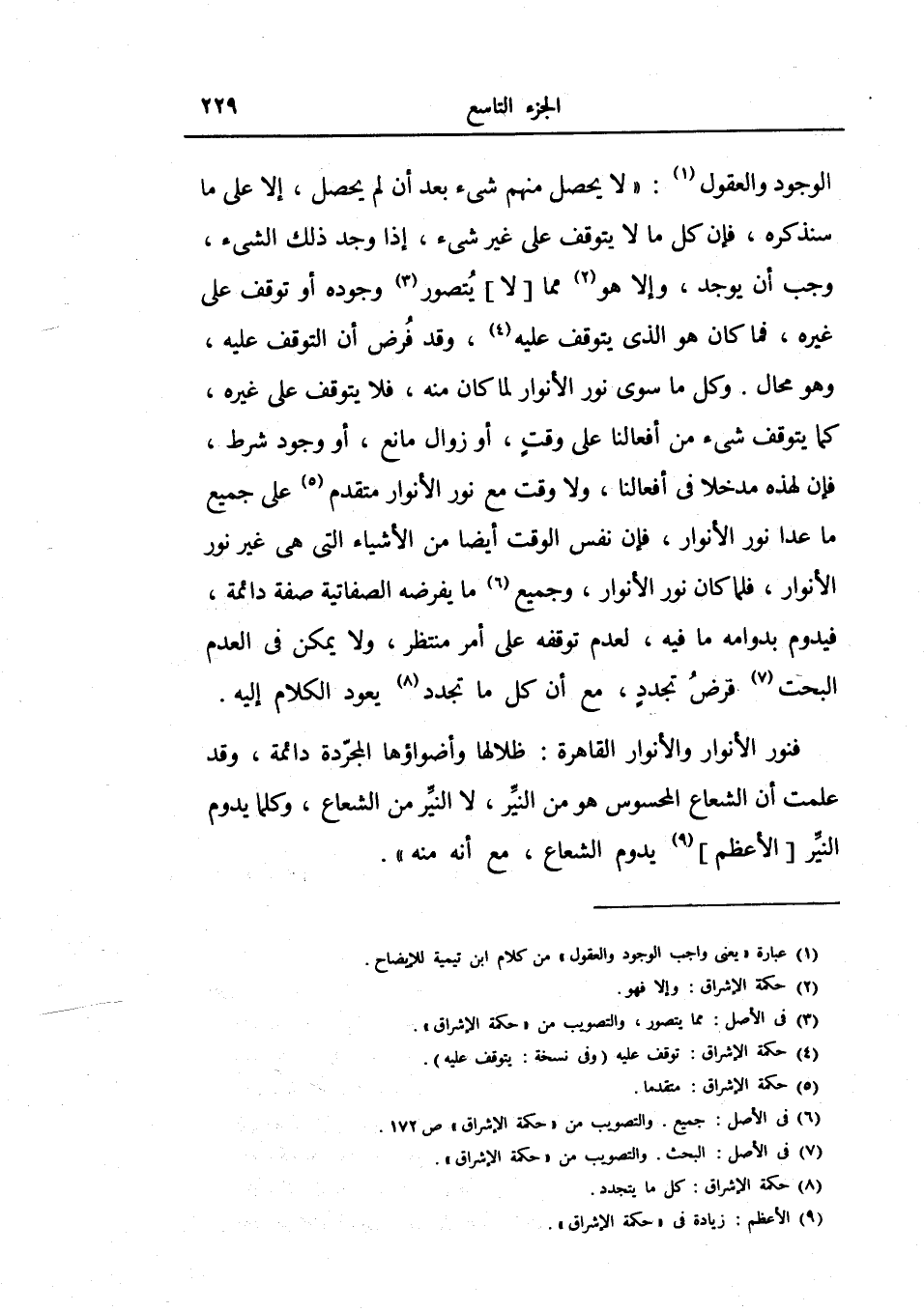 فنور الأنوار والأنوار القاهرة: ظلالها وأضواؤها المجردة دائمة، وقد علمت أن الشعاع المحسوس هو من النير، لا النير من الشعاع، وكلما يدوم النير الأعظم يدوم الشعاع، مع أنه منه.
