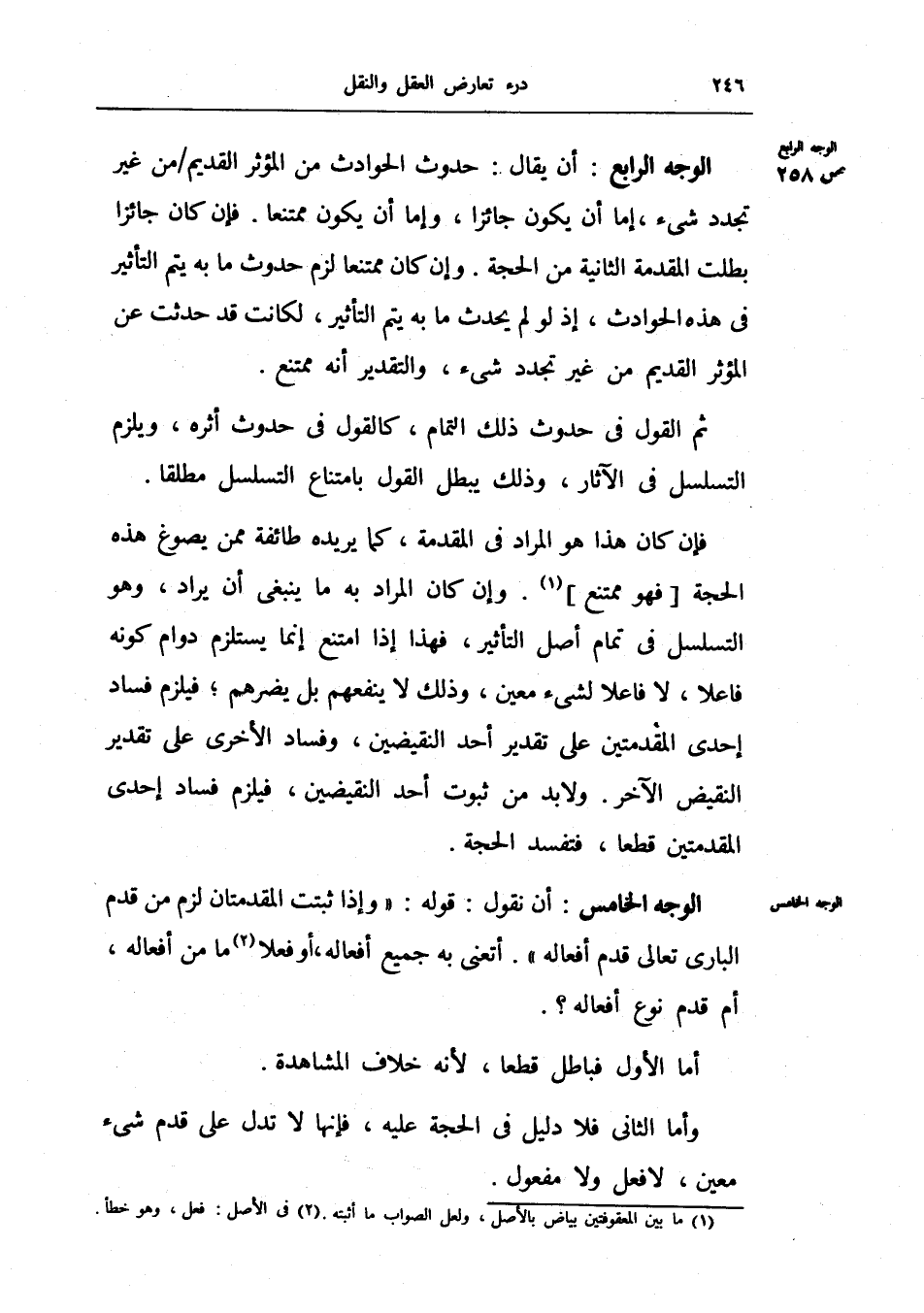 أن يقال: حدوث الحوادث من المؤثر القديم من غير تجدد شيء إما أن يكون جائزاً، وإما أن يكون ممتنعاً.