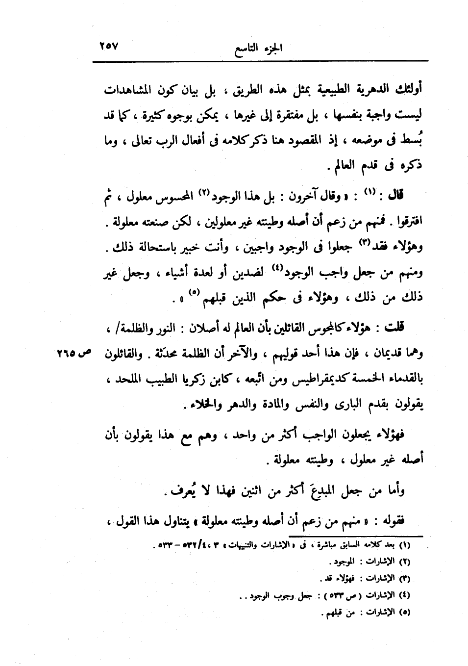 قال: وقال آخرون: بل هذا الوجود المحسوس معلول، ثم افترقوا.