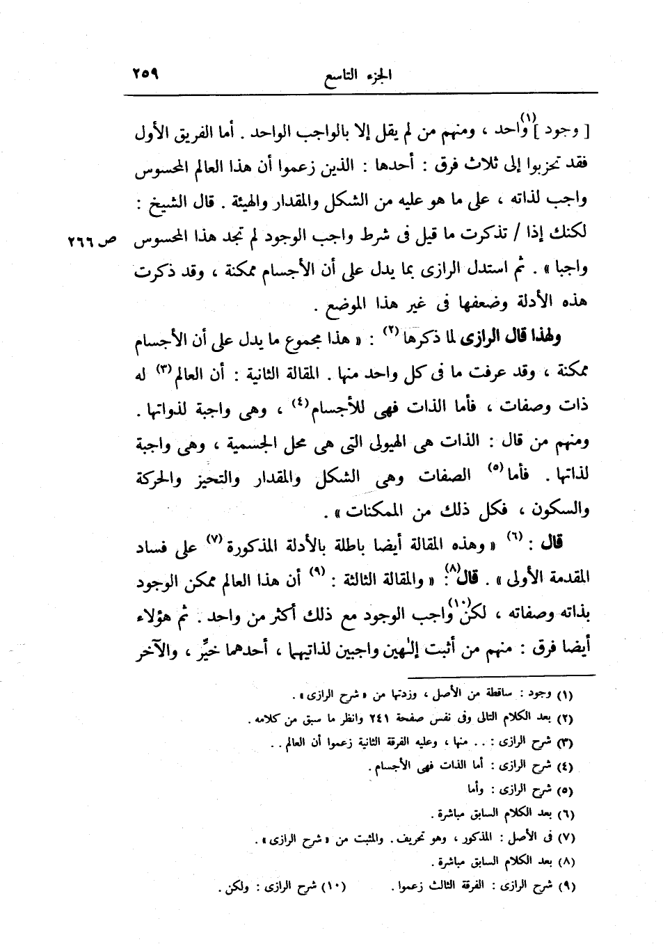 أما الفريق الأول فقد تحزبوا إلى ثلاث فرق: أحدها: الذين زعموا أن هذا العالم المحسوس واجب لذاته، على ما هو عليه من الشكل والمقدار والهيئة.