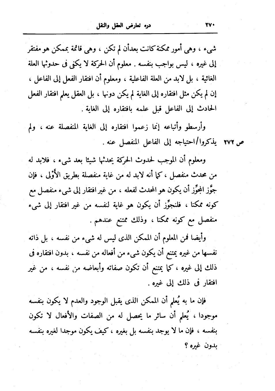 معلوم أن الحركة لا يكفي في حدوثها العلة الغائية، بل لا بد من العلة الفاعلية، ومعلوم أن افتقار الفعل إلى الفاعل، إن لم يكن مثل افتقاره إلى الغاية لم يكن دونها، بل العقل يعلم افتقار الفعل الحادث إلى الفاعل قبل علمه بافتقاره إلى الغاية.