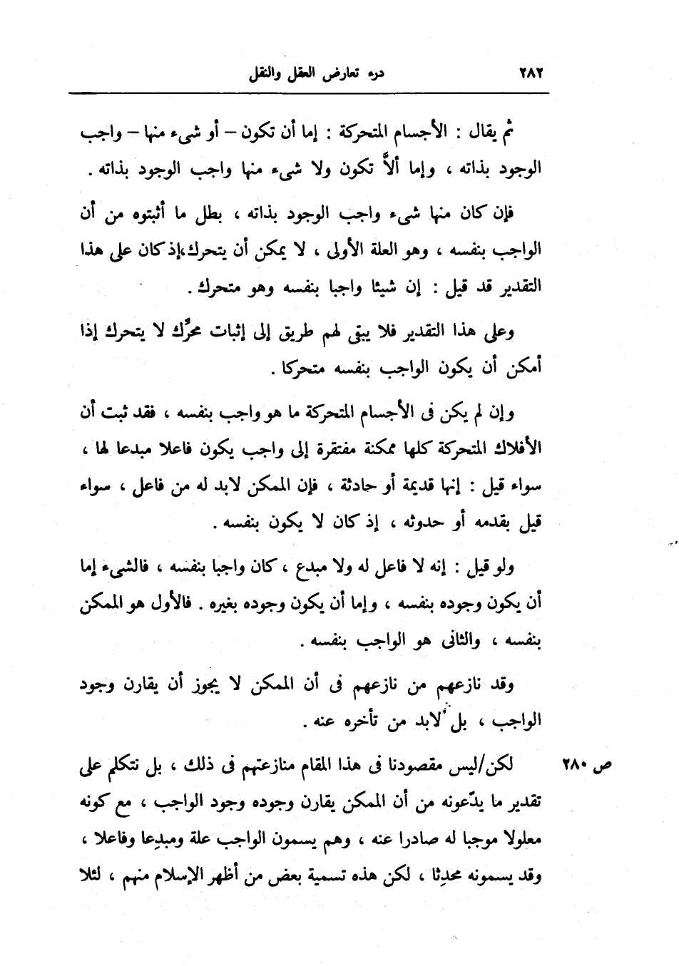 لكن ليس مقصودنا في هذا المقام منازعتهم في ذلك، بل نتكلم على تقدير ما يدعونه من أن الممكن يقارن وجوده وجود الواجب، مع كونه معلولاً موجباً له صادراً عنه، وهم يسمون الواجب علة ومبدعاً وفاعلاً، وقد يسمونه محدثاً، لكن هذه تسمية بعض من أظهر الإسلام منهم، لئلا