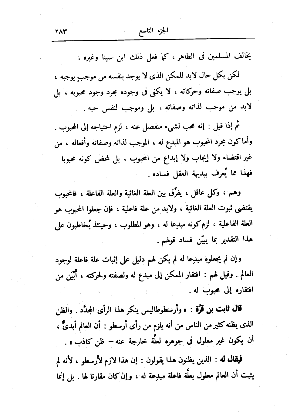 قال ثابت بن قرة: وأرسطو طاليس ينكر هذا الرأي المجدد.