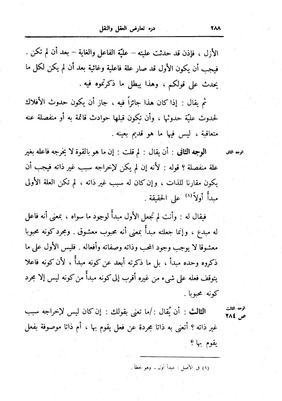 فيقال له: وأنت لم تجعل الأول مبدأً لوجود ما سواه، بمعني أنه فاعل له مبدع، وإنما جعلته مبدأً بمعنى أنه محبوب معشوق.