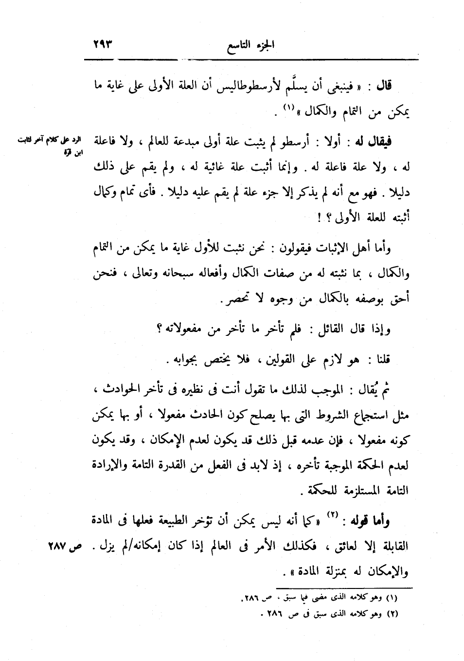 الرد على كلام آخر لثابت بن قرة