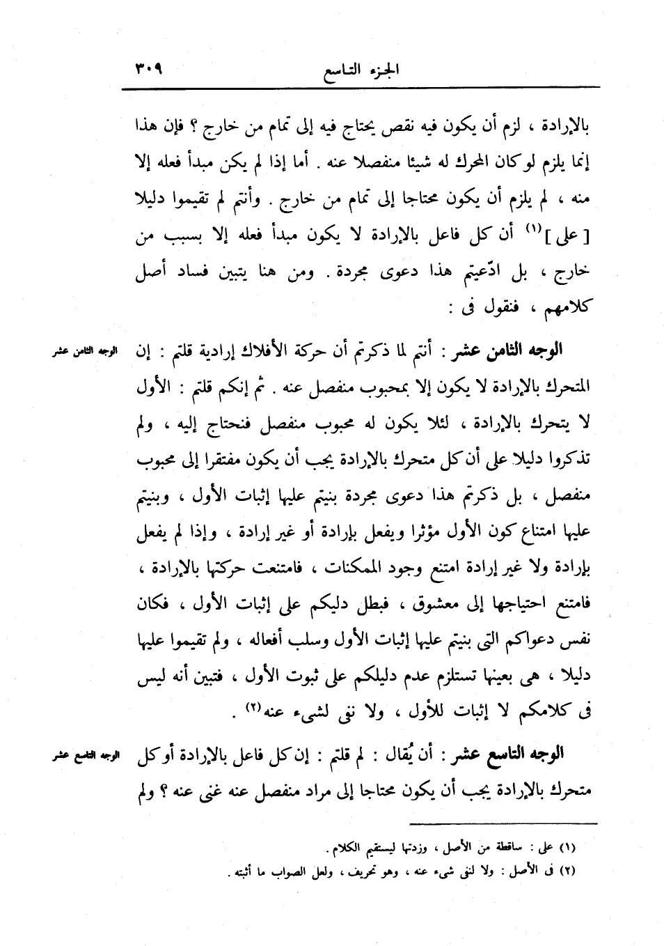 أن يقال: لم قلتم: إن كل فاعل بالإرادة أو كل متحرك، بالإرادة يجب أن يكون محتاجاً إلى مراد منفصل عنه غني عنه؟ ولم