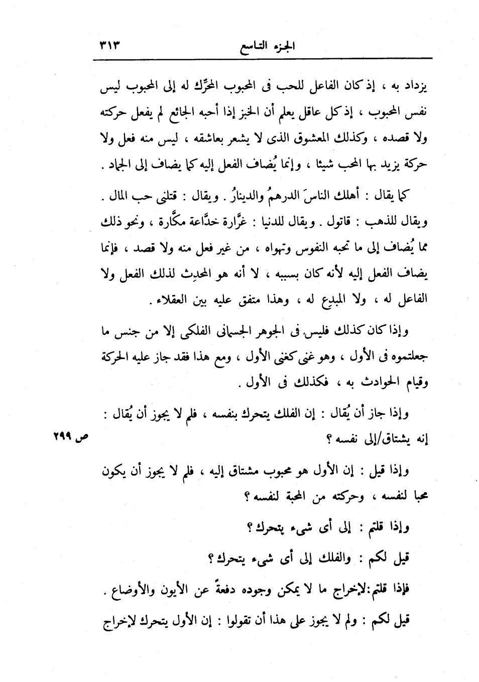 وإذا جاز أن يقال: إن الفلك يتحرك بنفسه، فلم لا يجوز أن يقال: إنه يشتاق إلى نفسه.