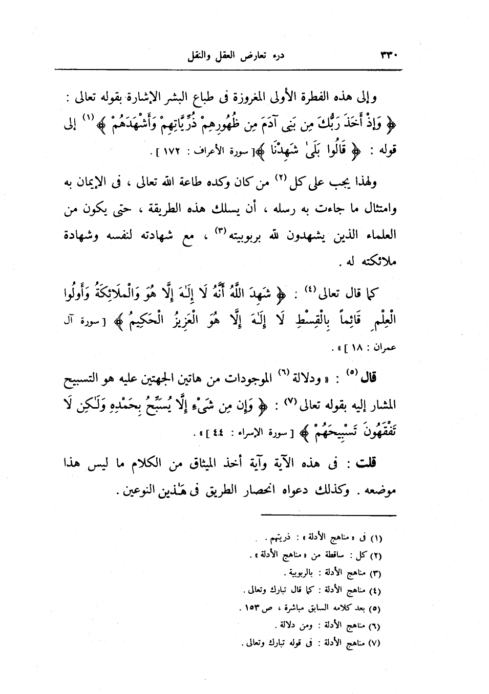 وإلى هذا الفطرة الأولى المغروزة في طباع البشر الإشارة بقوله تعالى: {وإذ أخذ ربك من بني آدم من ظهورهم ذريتهم وأشهدهم} إلى قوله: {قالوا بلى شهدنا} [الأعراف: 172] .