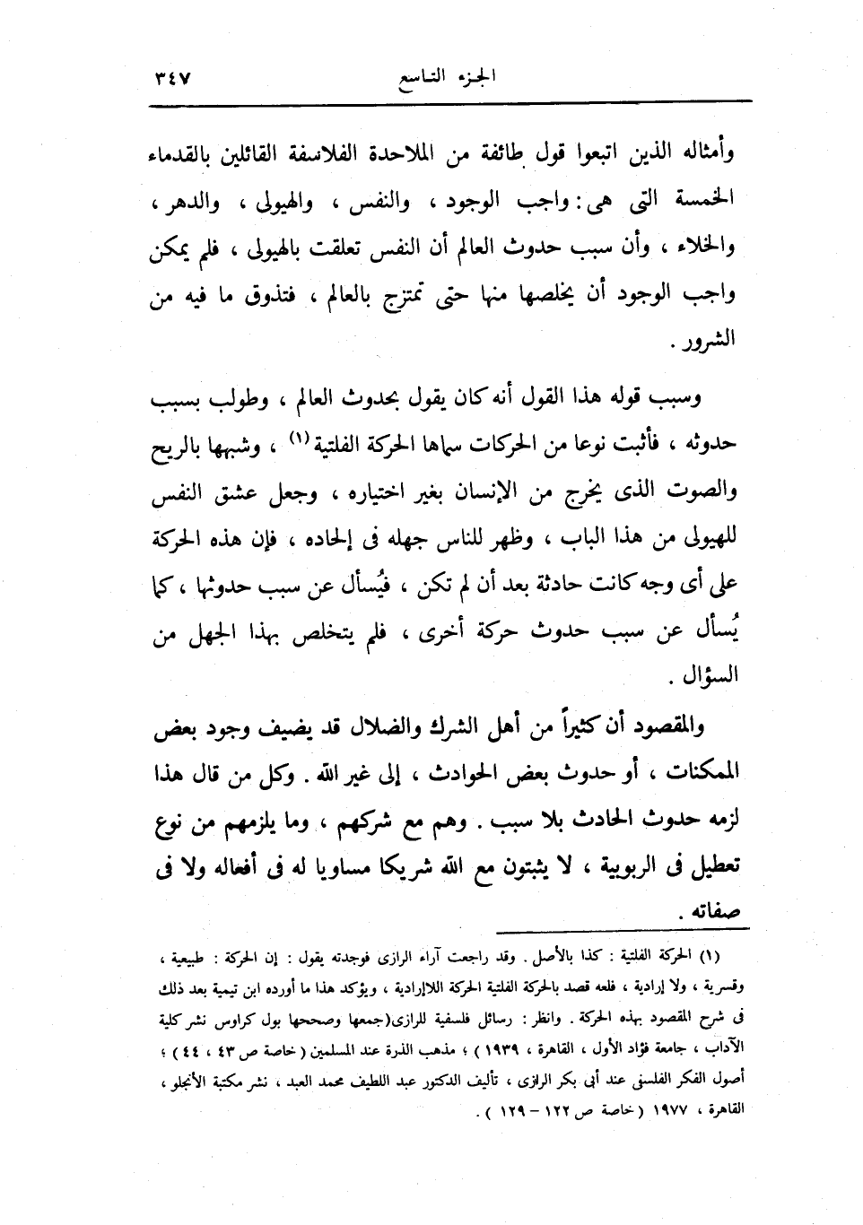 والمقصود أن كثيراً من أهل الشرك والضلال قد يضيف وجود بعض الممكنات، أو حدوث بعض الحوادث، إلى غير الله.