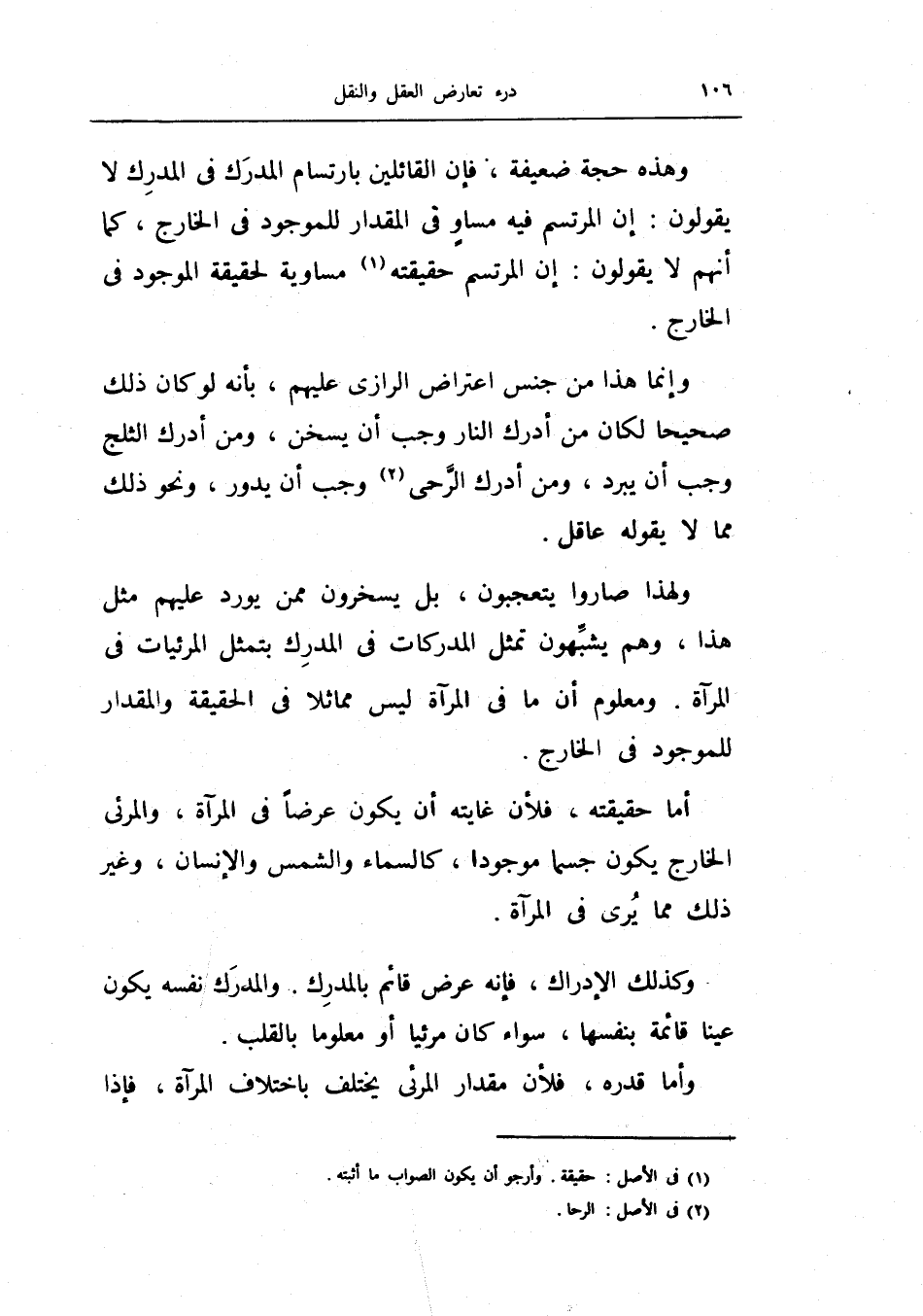ولهذا صاروا يتعجبون، بل يسخرون ممن يورد عليهم مثل هذا، وهم يشبهون تمثل المدركات في المدرك بتمثل المرئيات في المرآة.