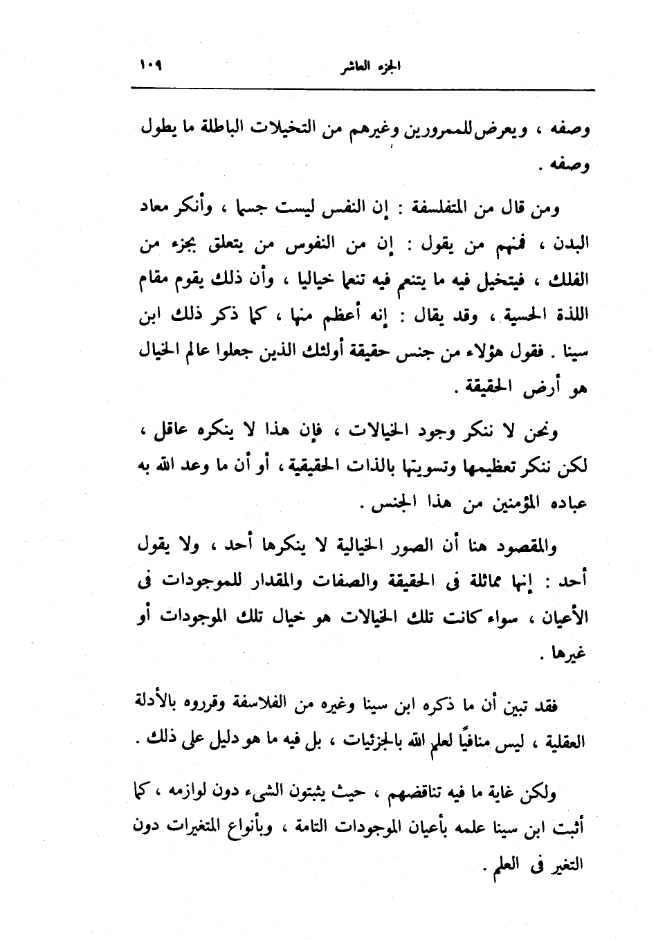 ولكن غاية ما فيه تناقضهم، حيث يثبتون الشيء دون لوازمه، كما أثبت ابن سينا علمه بأعيان الموجودات التامة، وبأنواع المتغيرات دون التغير في العلم.
