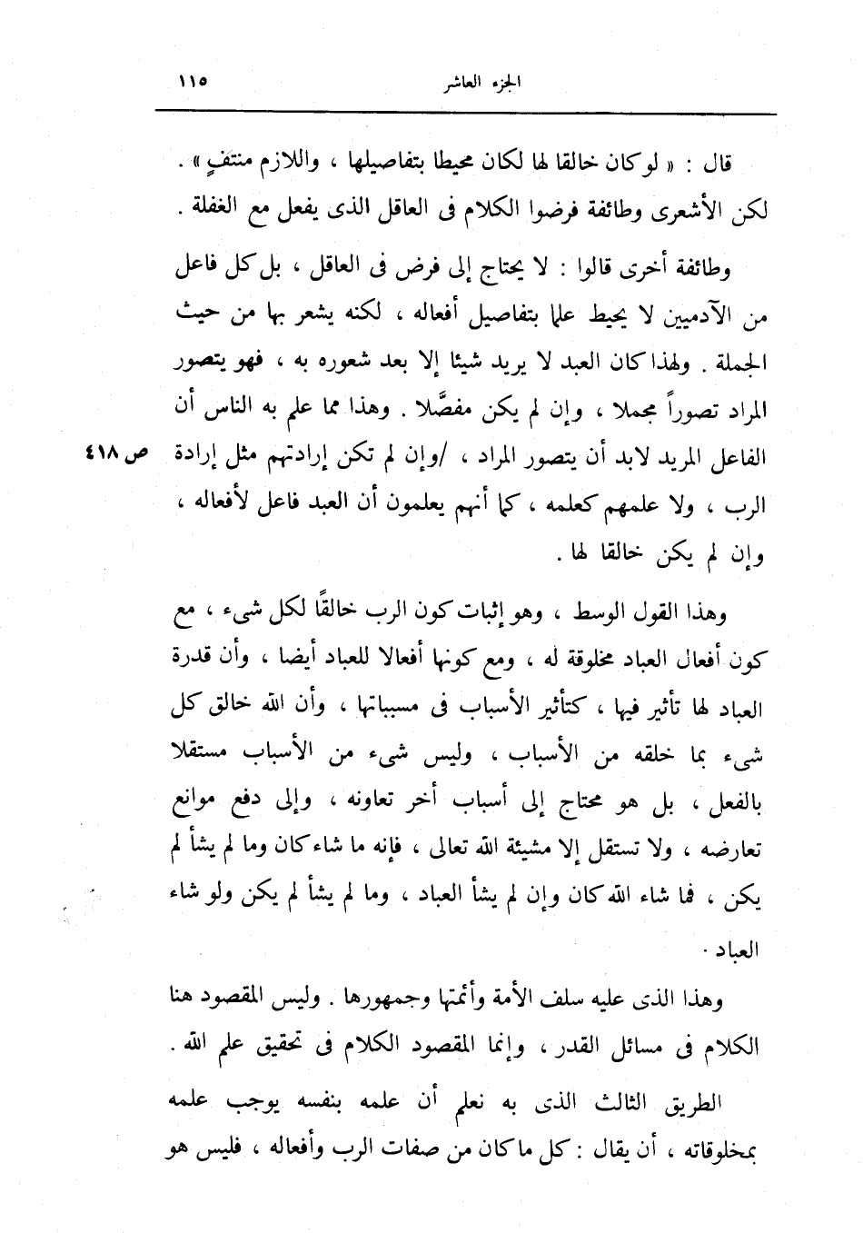 لكن الأشعري وطائفة فرضوا الكلام في العاقل الذي يفعل مع الغفلة.