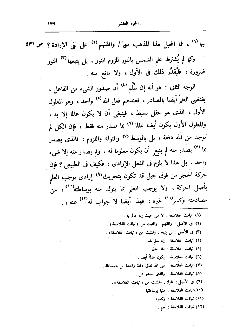 بل بالوسط والتولد واللزوم، فالذي يصدر مما يصدر منه لم ينبغ أن يكون معلوماً له، ولم يصدر منه إلا شيء واحد، بل هذا لا يلزم في الفعل الإرادي، فكيف في الطبيعي؟ فإن حركة الحجر من فوق جبل قد تكون بتحريك إرادي يوجب العلم بأصل الحركة، ولا يوجب العلم بما يتولد منه بوساطته، من مصادمته وكسر غيره، فهذا أيضاً لا جواب له عنه.
