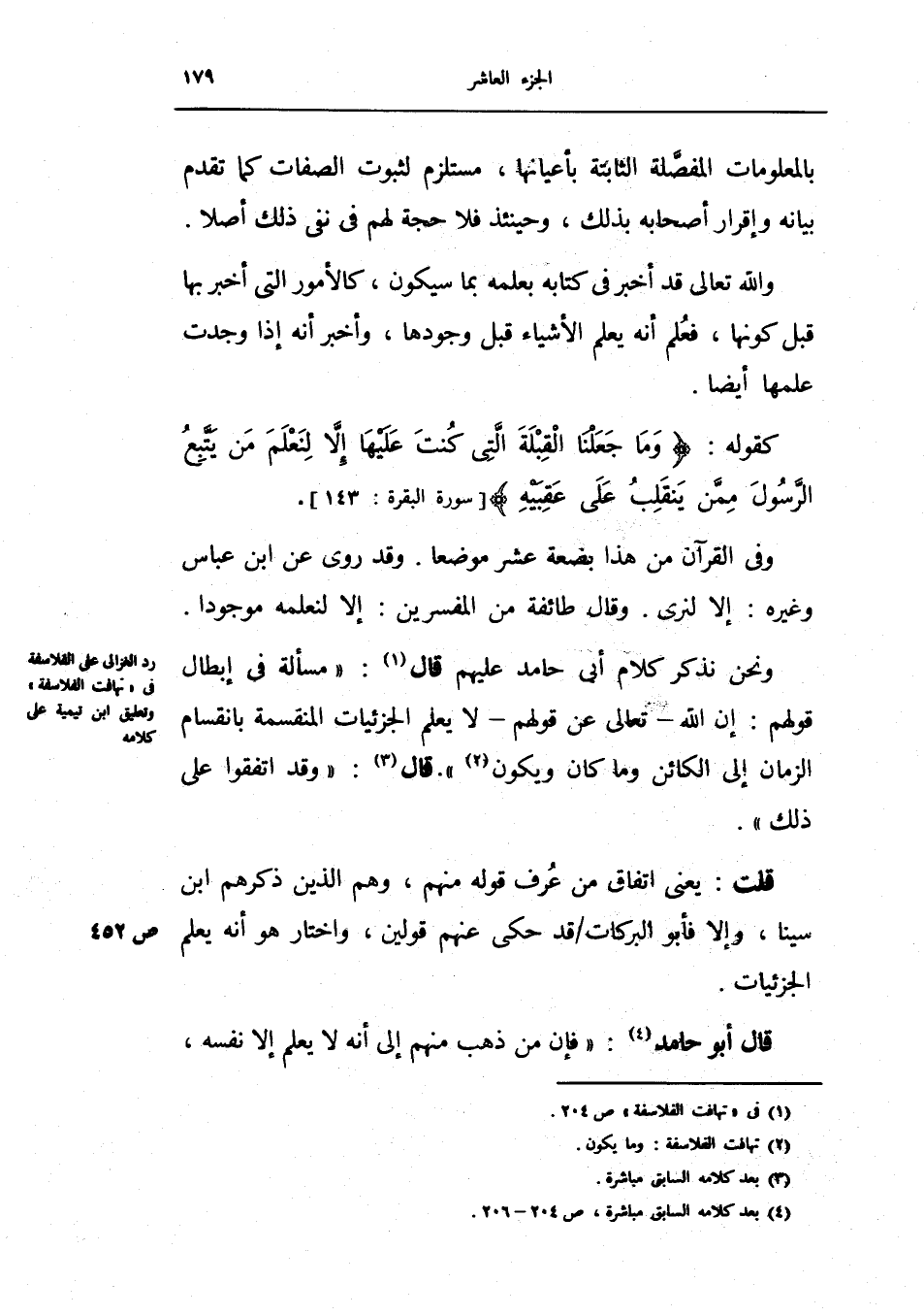 رد الغزالي على الفلاسفة في تهافت الفلاسفة وتعليق ابن تيمية