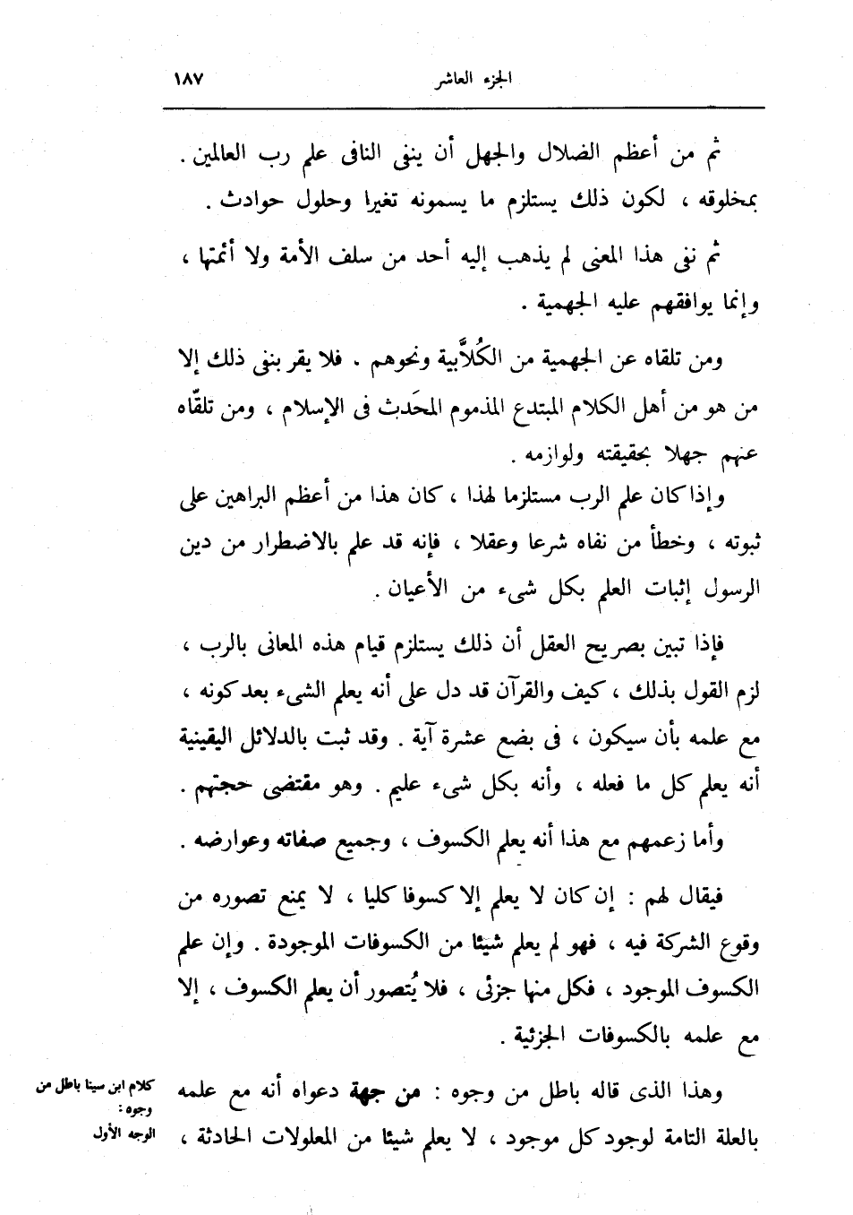 كلام ابن سينا باطل من وجوه. الوجه الأول