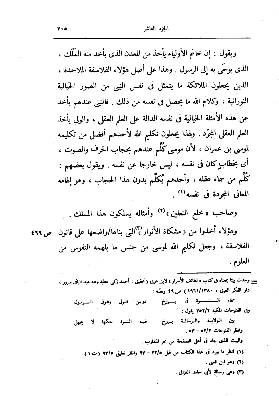 وهؤلاء أخذوا من مشكاة الأنوار التي بناها واضعها على قانون الفلاسفة، وجعل تكليم الله لموسى من جنس ما يلهمه النفوس من العلوم.