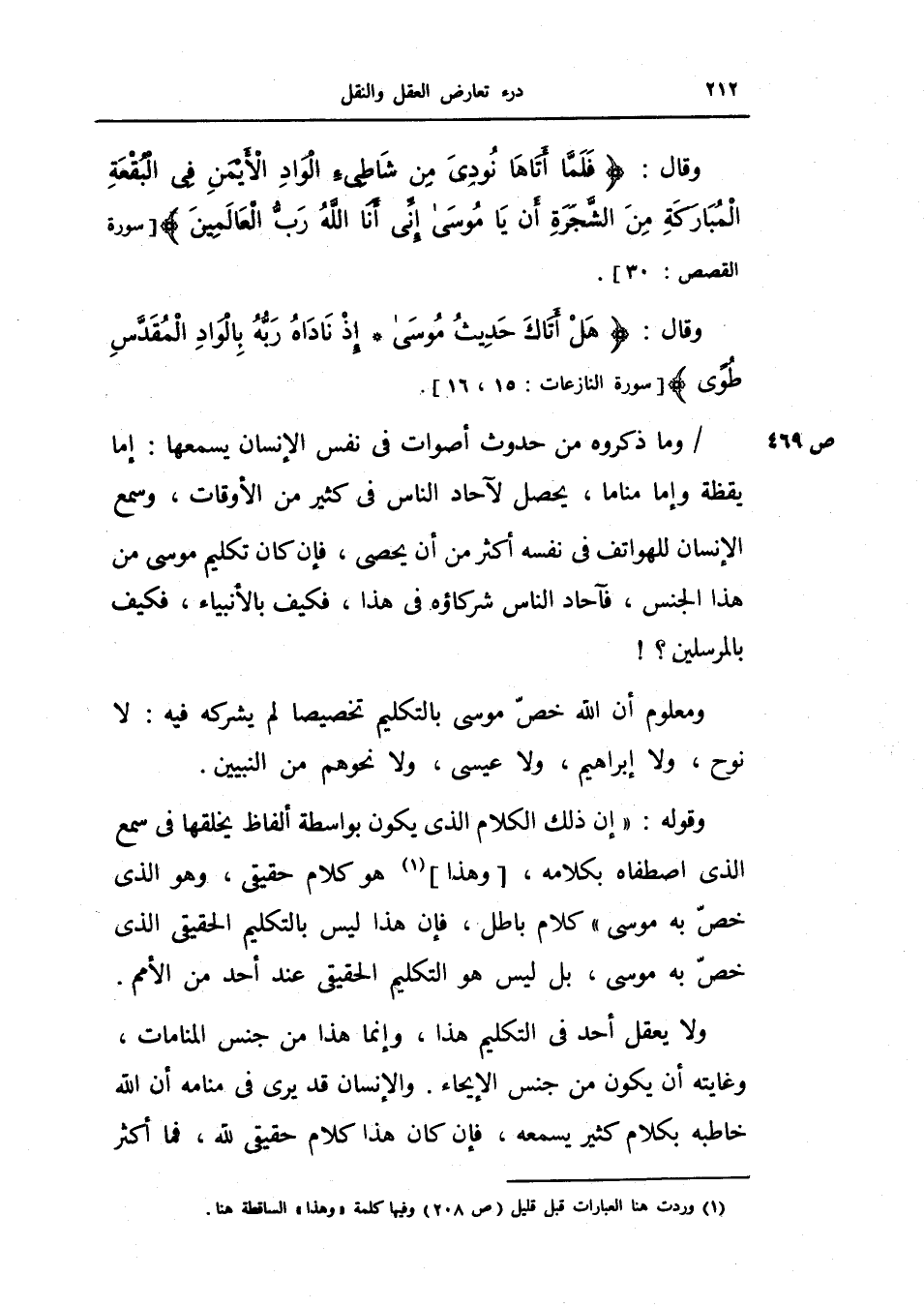 وما ذكروه من حدوث أصوات في نفس الإنسان يسمعها: إما يقظة وإما مناماً، يحصل لآحاد الناس في كثير من الأوقات، وسمع الإنسان للهواتف في نفسه أكثر من أن يحصى، فإن كان تكليم موسى من هذا الجنس، فآحاد الناس شركاؤه في هذا، فكيف بالأنبياء، فكيف بالمرسلين؟!.