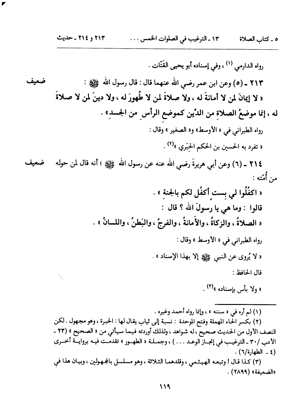 (¬2) بكسر الحاء المهملة وفتح الموحدة: نسبة إلى ثياب يقال لها: الحبرة، وهو مجهول. لكن النصف الأول من الحديث صحيح، له شواهد، ولذلك أوردته فيما سيأتي من "الصحيح" (23 - الأدب/ 30 - الترغيب في إنجاز الوعد ...)، وجملة "الطهور" تقدمت فيه برواية أخرى (4 - الطهارة/ 6).