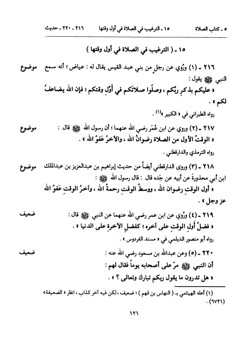 220 - (5) [ضعيف] وعن عبد الله بن مسعود رضي الله عنه: