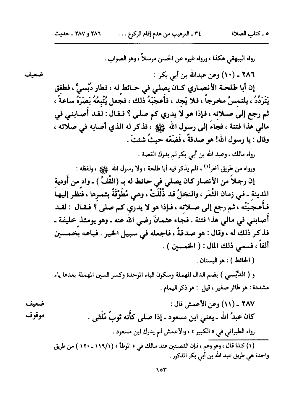 286 - (10) [ضعيف] وعن عبد الله بن أبي بكر: