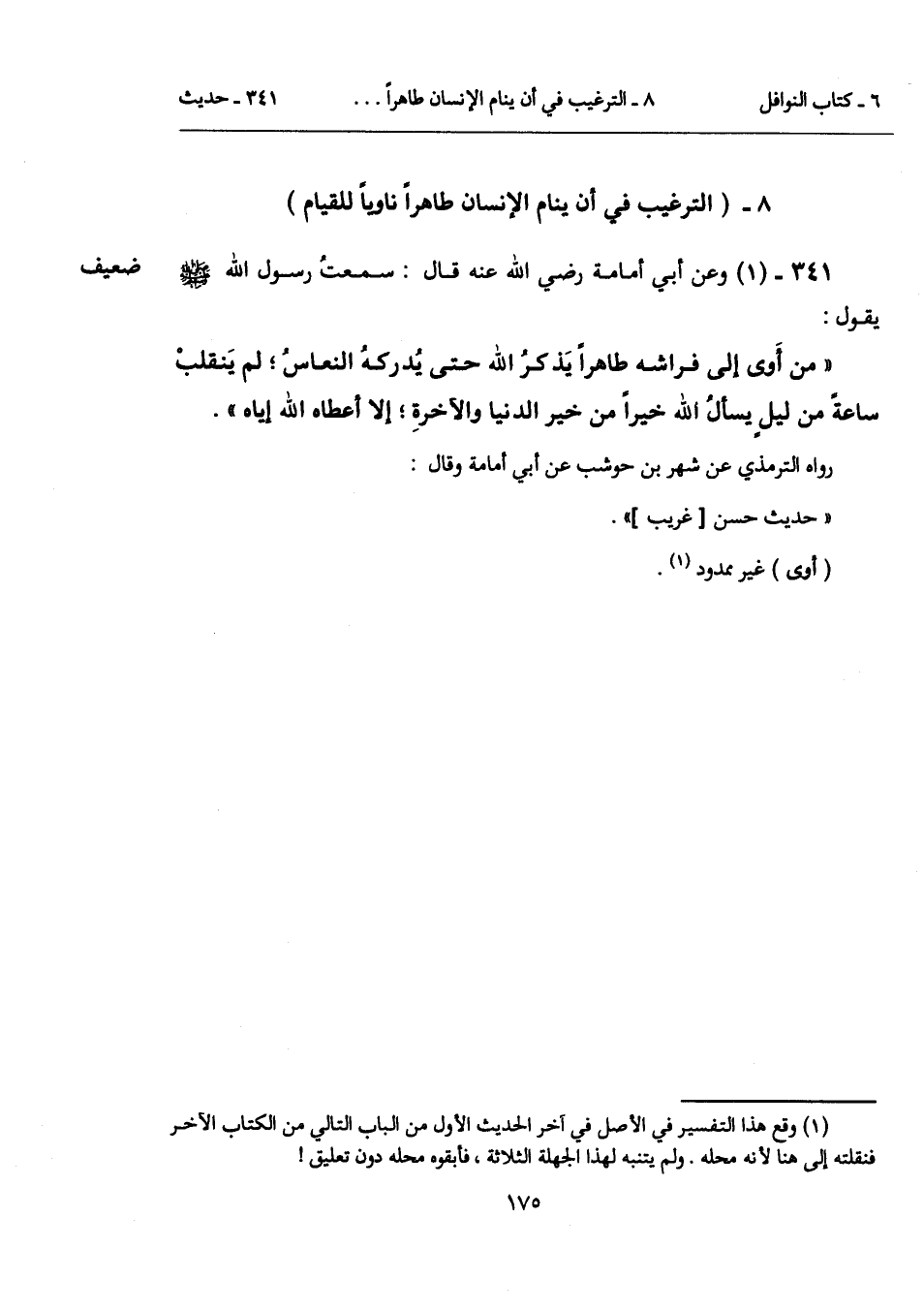 8 - (الترغيب فى أن ينام الإنسان طاهراً ناوياً للقيام)