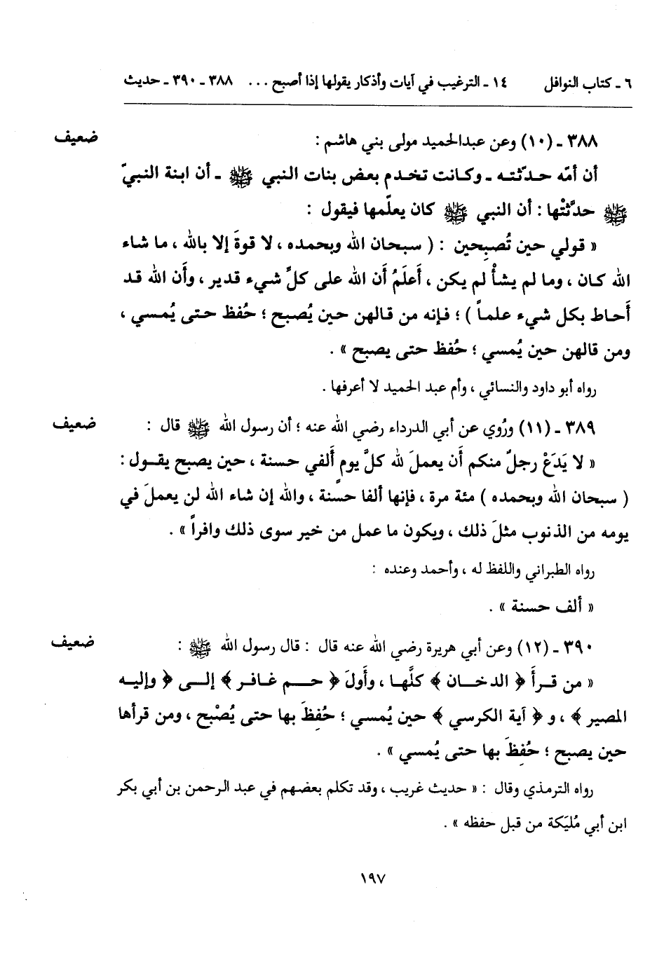 390 - (12) [ضعيف] وعن أبي هريرة رضي الله عنه قال: قال رسول الله - صلى الله عليه وسلم -: