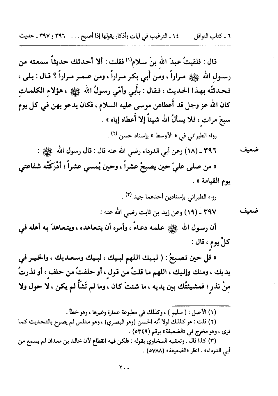 397 - (19) [ضعيف] وعن زيد بن ثابت رضي الله عنه: