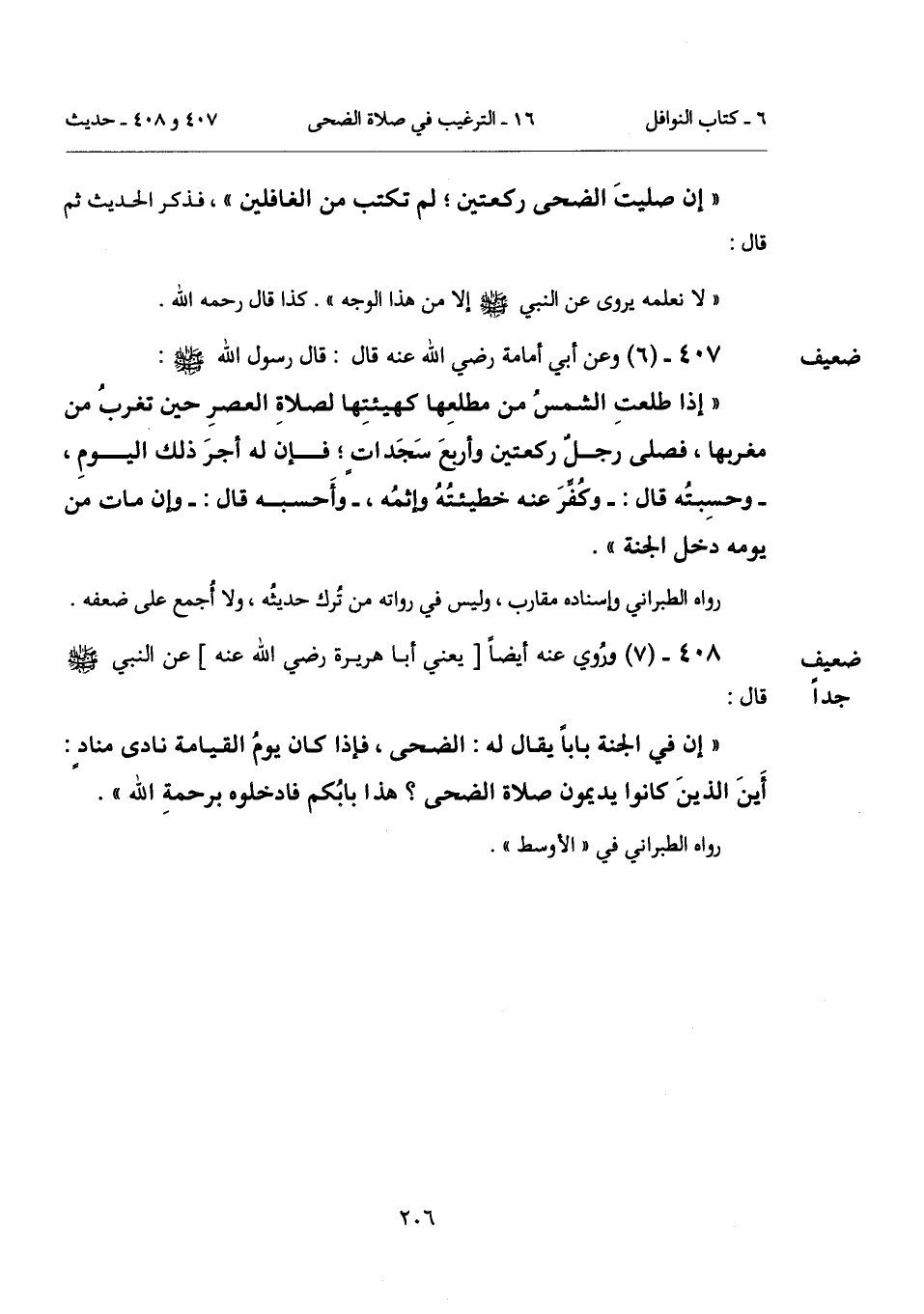 407 - (6) [ضعيف] وعن أبي أمامة رضي الله عنه قال: قال رسول الله - صلى الله عليه وسلم -: