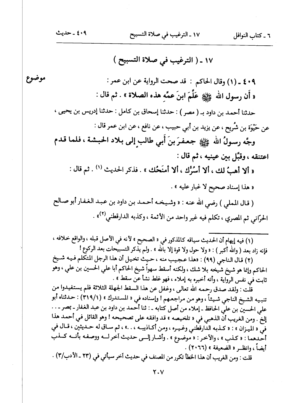 409 - (1) [موضوع] وقال الحاكم: قد صحت الرواية عن ابن عمر: