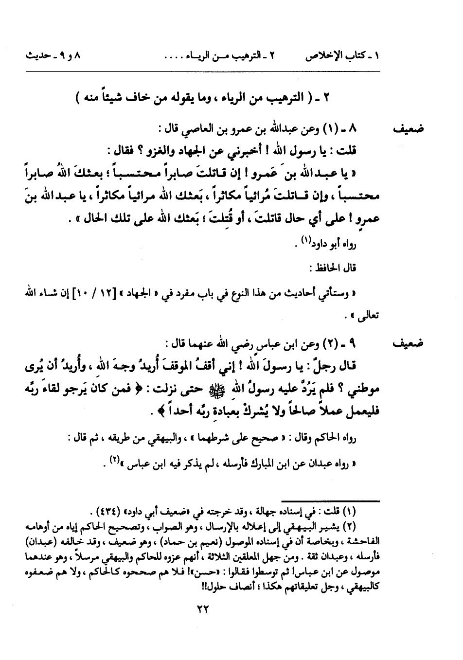 8 - (1) [ضعيف] وعن عبد الله بن عمرو بن العاصي قال: