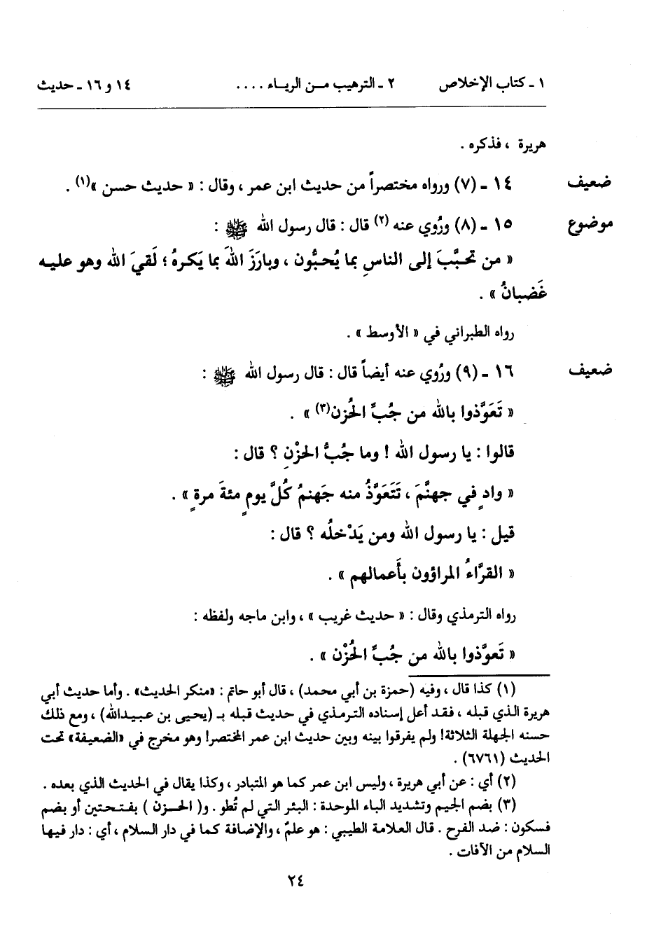 (¬3) بضم الجيم وتشديد الباء الموحدة: البئر التي لم تُطو. و (الحزن) بفتحتين أو بضم فسكون: ضد الفرح. قال العلامة الطيبي: هو علمٌ، والإضافة كما في دار السلام، أي: دار فيها السلام من الآفات.