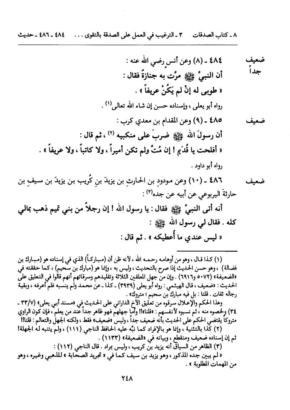 485 - (9) [ضعيف] وعن المقدام بن معدي كرب: