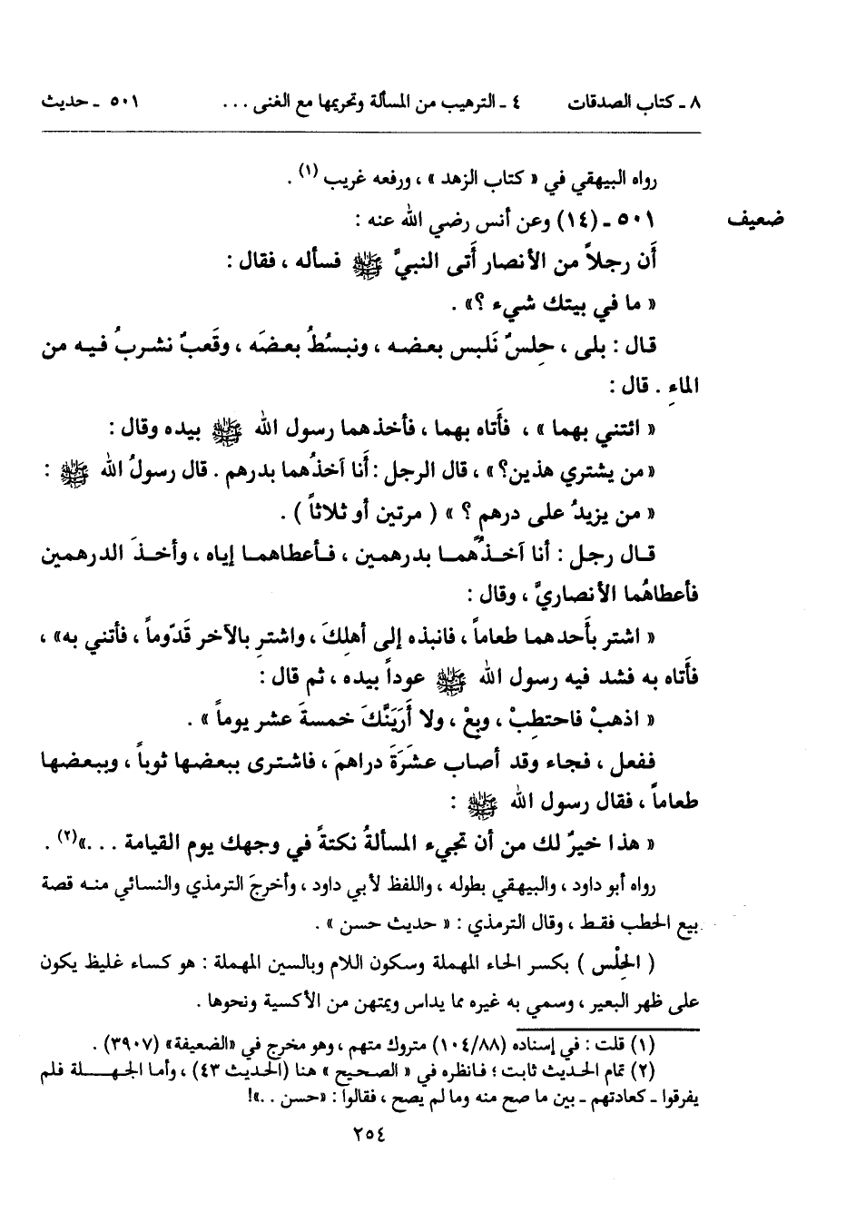 رواه أبو داود، والبيهقي بطوله، واللفظ لأبي داود، وأخرجَ الترمذي والنسائي منه قصة بيع الحطب فقط، وقال الترمذي: "حديث حسن".