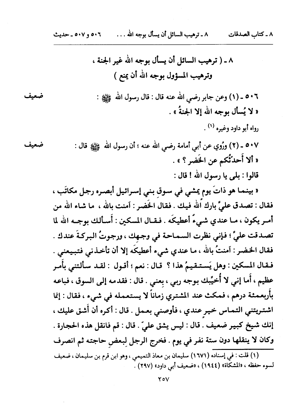 8 - (الترهيب السائل أن يسأل بوجه الله غير الجنة, وترهيب المسؤول بوجه الله أن يمنع).