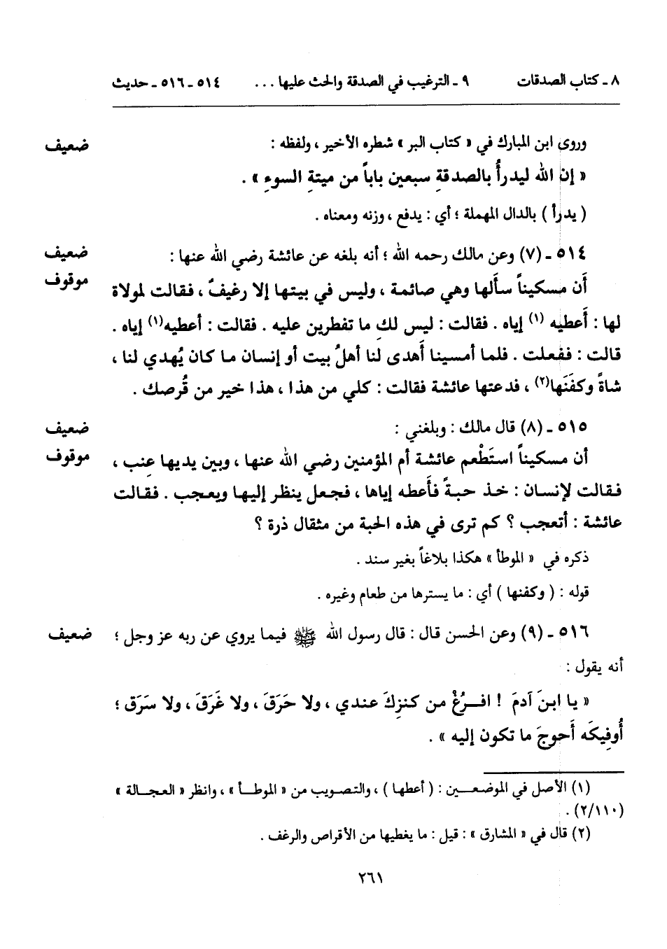 514 - (7) [ضعيف موقوف] وعن مالك رحمه الله؛ أنه بلغه عن عائشة رضي الله عنها: