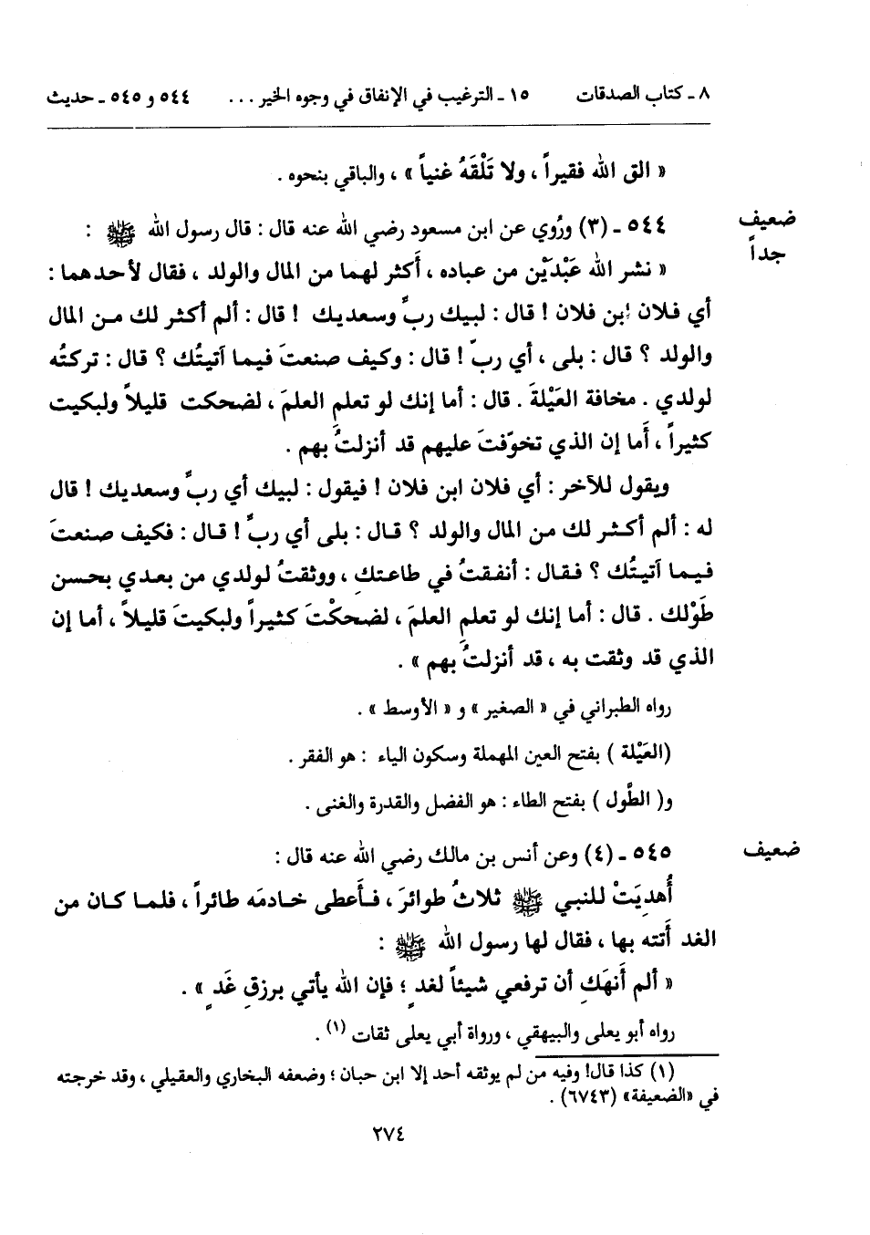 545 - (4) [ضعيف] وعن أنس بن مالك رضي الله عنه قال:
