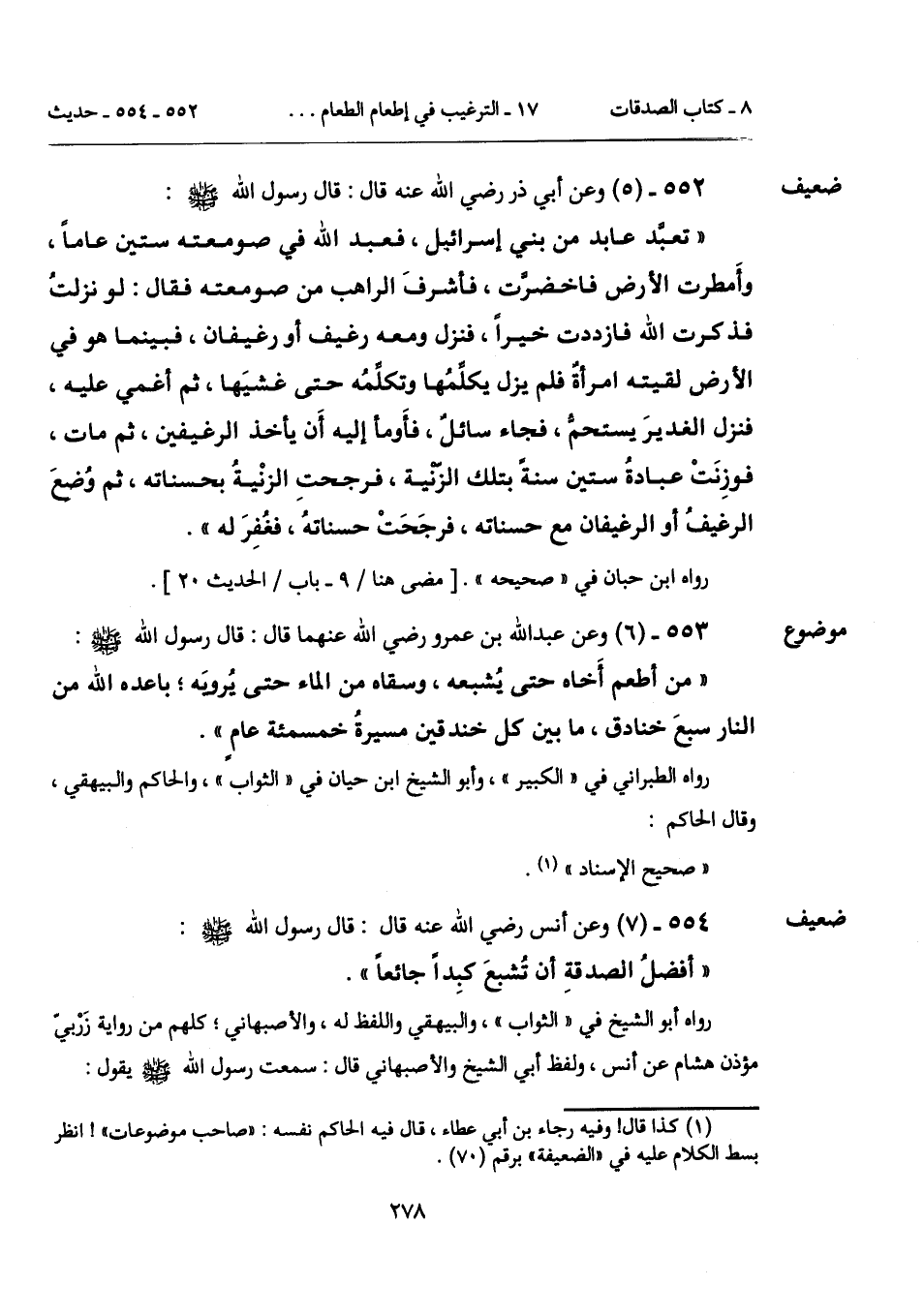 552 - (5) [ضعيف] وعن أبي ذر رضي الله عنه قال: قال رسول الله - صلى الله عليه وسلم -: